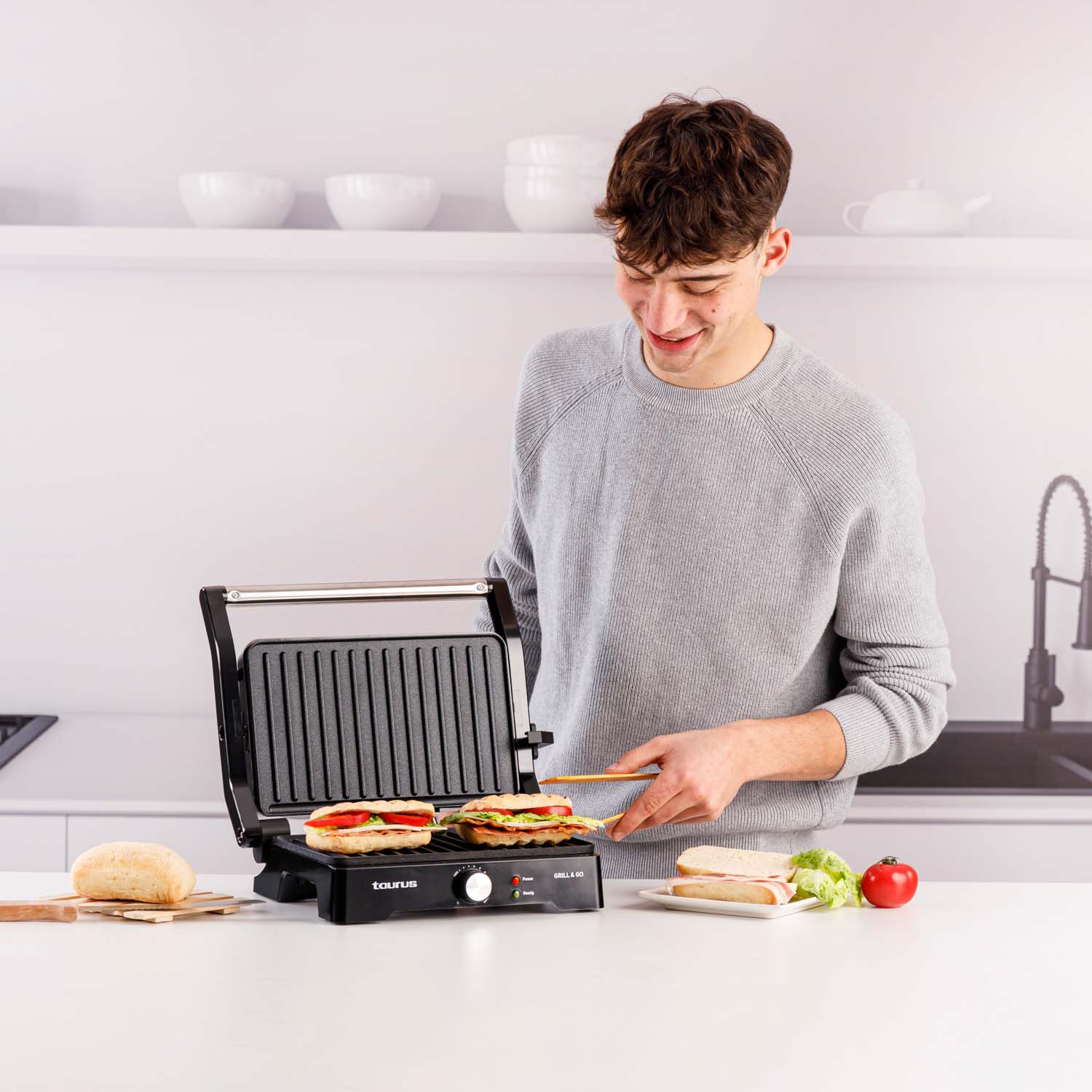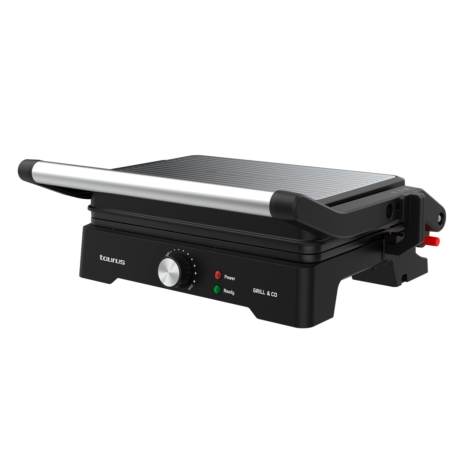 Ηλεκτρική γκριλιέρα Grill & Co1500W της Taurus, με άνοιγμα 180º και πλάκες διαστάσεων 27,5 x 17,3 cm που εξασφαλίζει ομοιόμορφο και υγιεινό μαγείρεμα χάρη στην αντικολλητική επένδυση χωρίς PFOA. Περιλαμβάνει καπάκι με κλίση, αναδιπλούμενο μηχανισμό για την απομάκρυνση του περισσευούμενου λίπους, ρυθμιζόμενο θερμοστάτη και φωτεινή ένδειξη λειτουργίας. Με φινίρισμα από ανοξείδωτο ατσάλι, δίσκο συλλογής λίπους και σύστημα κλειδώματος πλακών, είναι πρακτική και εύκολη στην αποθήκευση. Ιδανική για ψήσιμο κρεάτων, λαχανικών και την προετοιμασία σάντουιτς άνετα και εύκολα!