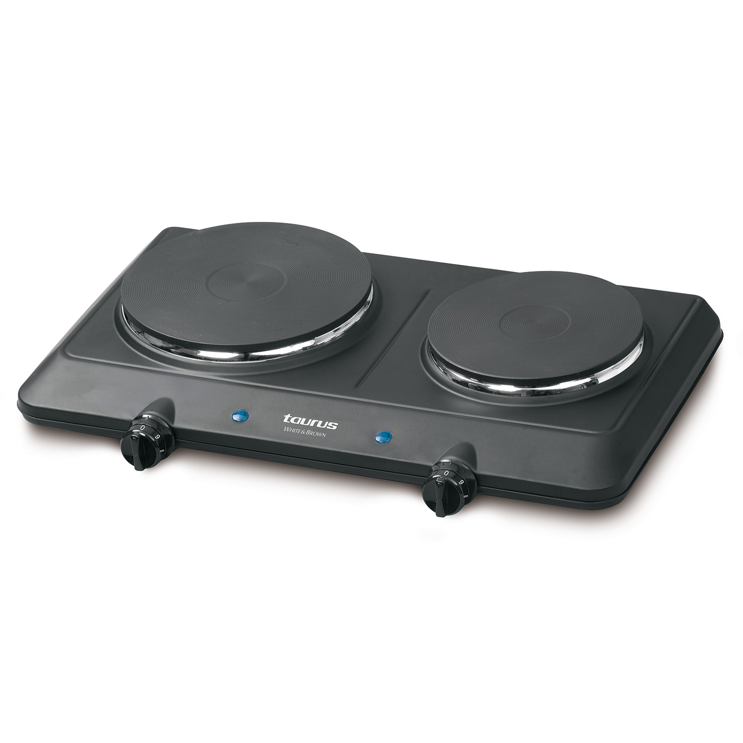 The Volcan Duo from Taurus is a portable two-dimensional cooker with a power of up to 1,500 W, ideal for camping, caravans or as a utility cooker at home. It features a large (18 cm) and a small (15 cm) hob, 9 temperature levels, a durable painted stainless steel body, a bright operation indicator and non-slip feet for extra safety.