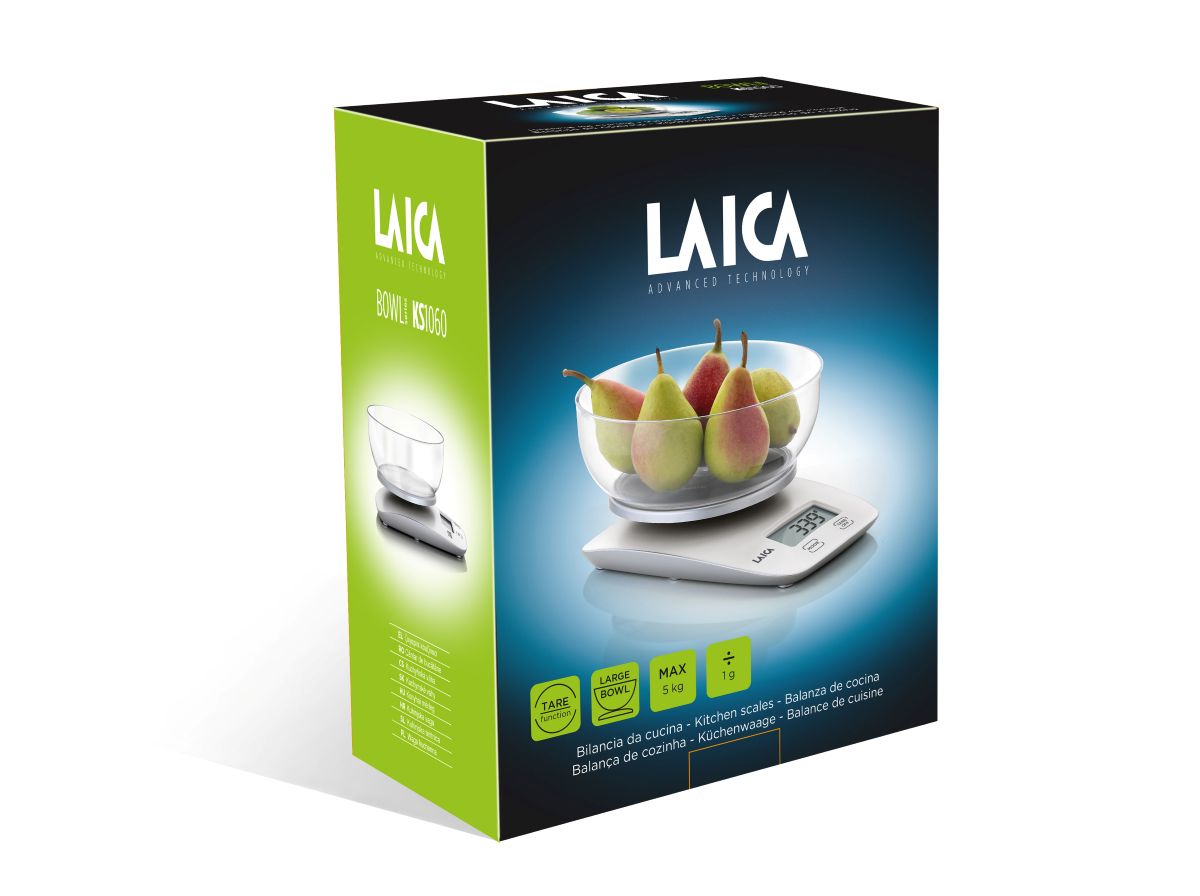 Η Laica KS1060 είναι μια ψηφιακή ζυγαριά κουζίνας με μεγάλη χωρητικότητα, έως 5 kg και ακρίβεια 1 g/0.1 oz. Διαθέτει ευκρινή LCD οθόνη, αφαιρούμενο πλαστικό μπολ, λειτουργία tare και είναι πολύ ελαφριά και συμπαγής.