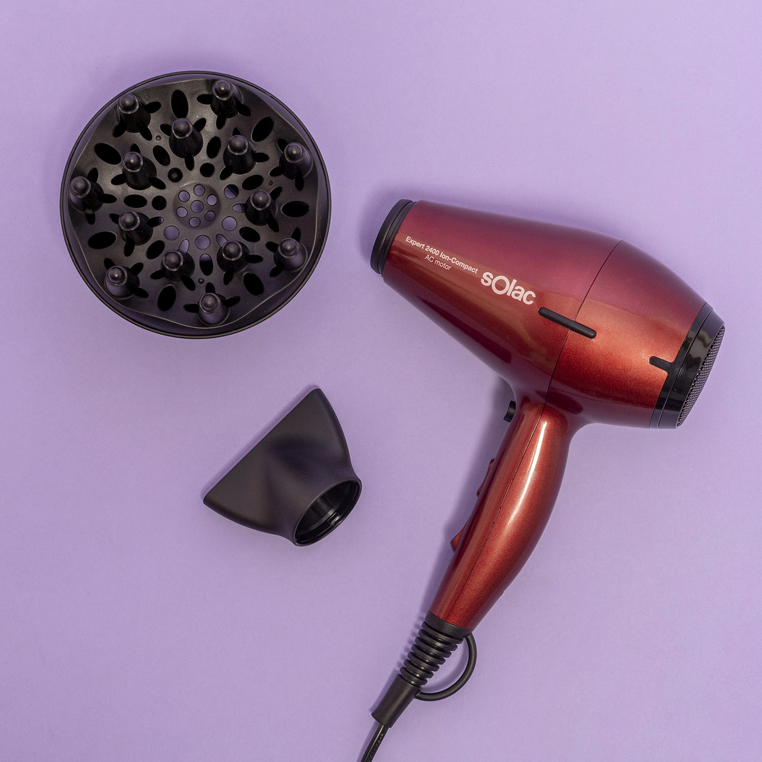 Το Expert 2400 Ion-Compact της Solac είναι η ιδανική επιλογή για όσους αναζητούν επαγγελματική απόδοση στο στέγνωμα και το styling, συνδυασμένη με εργονομία και σύγχρονη τεχνολογία. Με μοτέρ AC ισχύος 2400 W, προσφέρει εξαιρετική ροή αέρα και μεγάλη διάρκεια ζωής, εξασφαλίζοντας άμεσο και αποδοτικό στέγνωμα, ακόμα και σε πυκνά ή σγουρά μαλλιά.