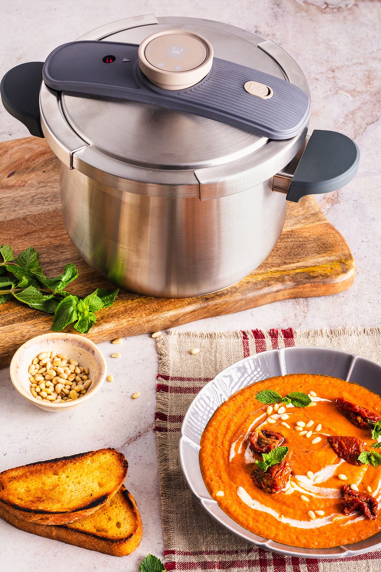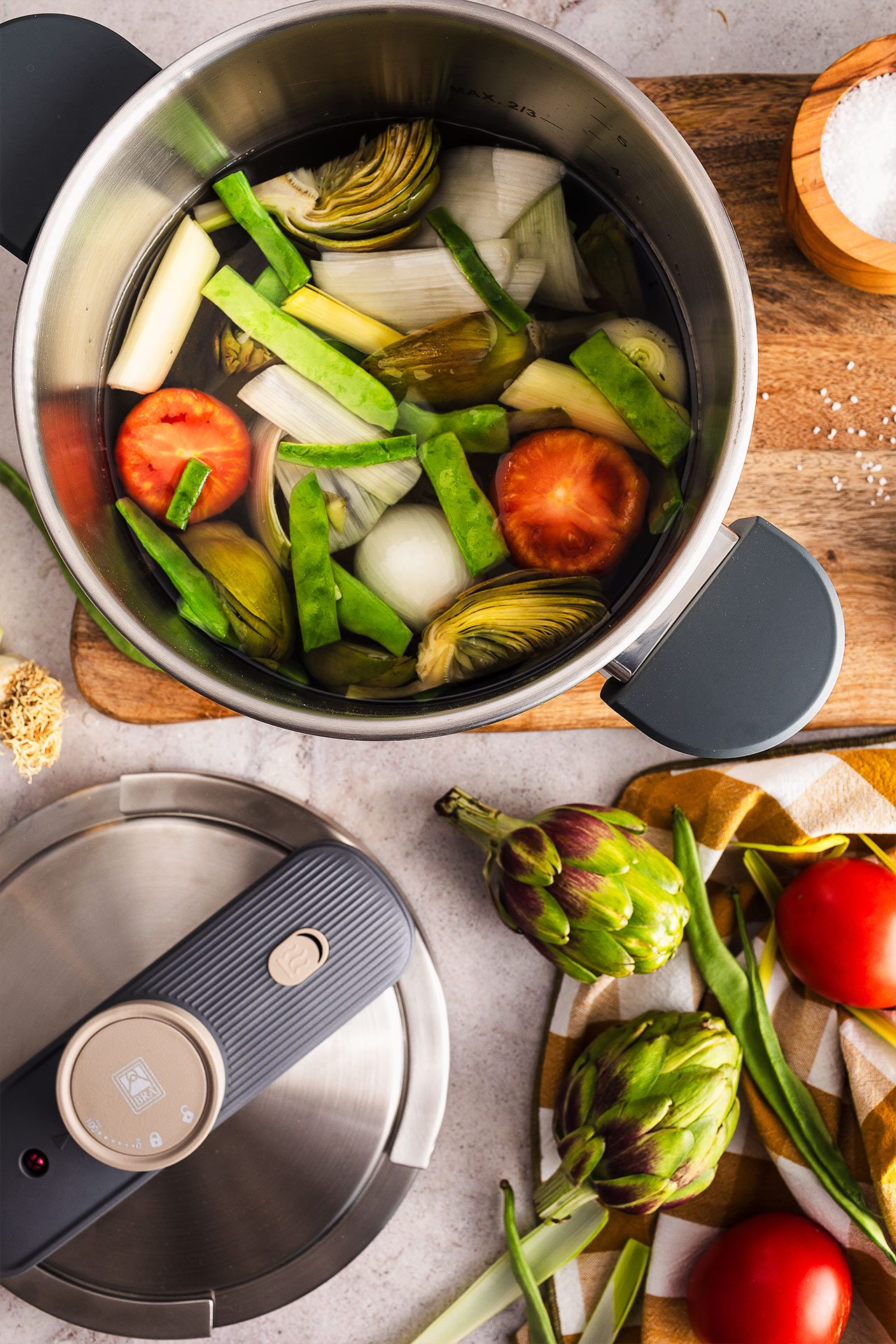 The pot is completely sealed, which reduces energy consumption and helps preserve aromas, flavors, and nutrients. It is very easy to open and close, with a built-in locking system (it does not open if the pressure inside exceeds a safe limit).