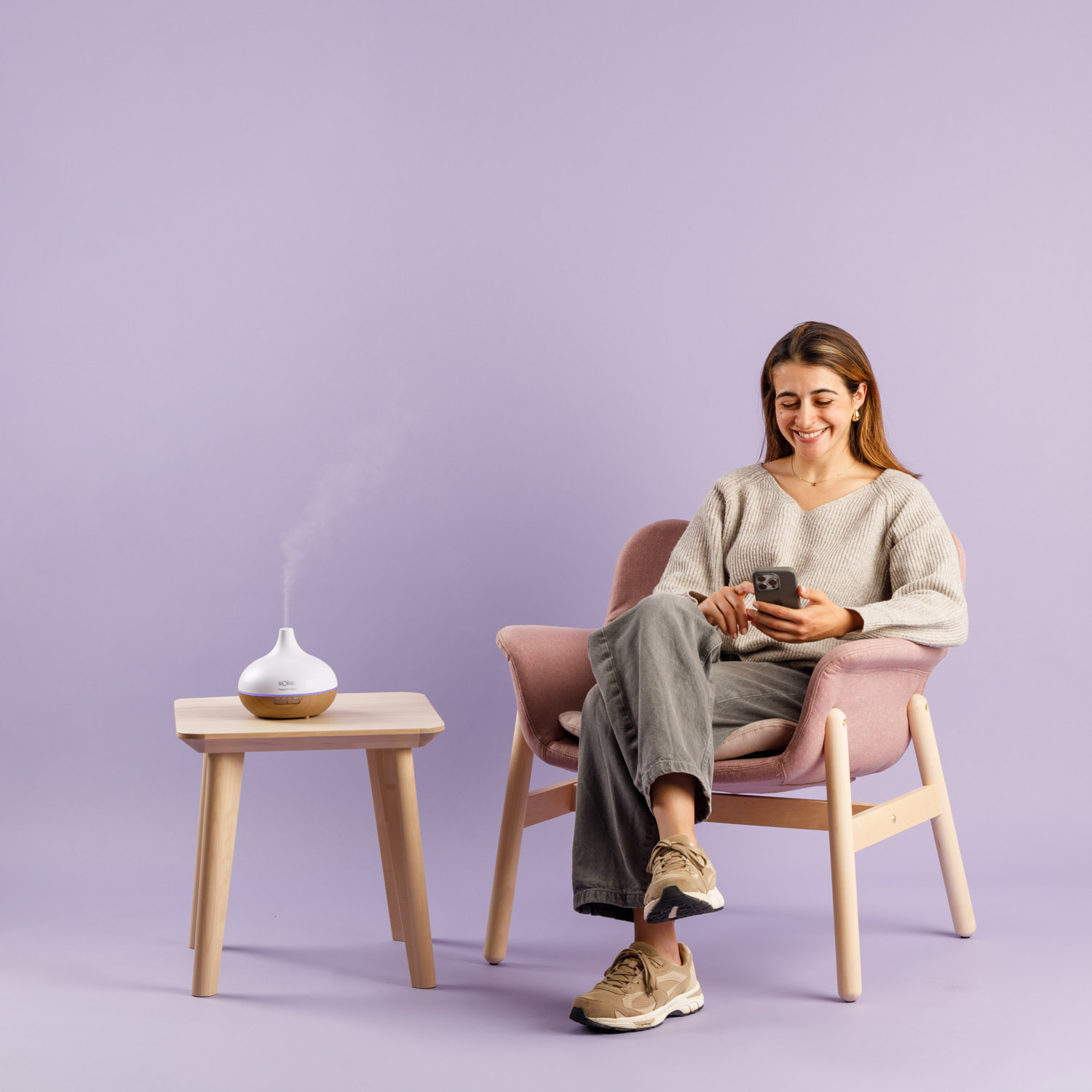 Είναι εξαιρετικά αθόρυβος, κατάλληλος για χρήση σε υπνοδωμάτιο, γραφείο ή σαλόνι, ενώ το διπλό σύστημα ασφαλείας με αυτόματη διακοπή λειτουργίας και φωτεινή αλλά και ηχητική ειδοποίηση, εξασφαλίζει ασφαλή και εύκολη χρήση. Ο κομψός σχεδιασμός του τον καθιστά ιδανικό για κάθε χώρο, προσφέροντας παράλληλα αρωματοθεραπεία και υγρασία στον αέρα.