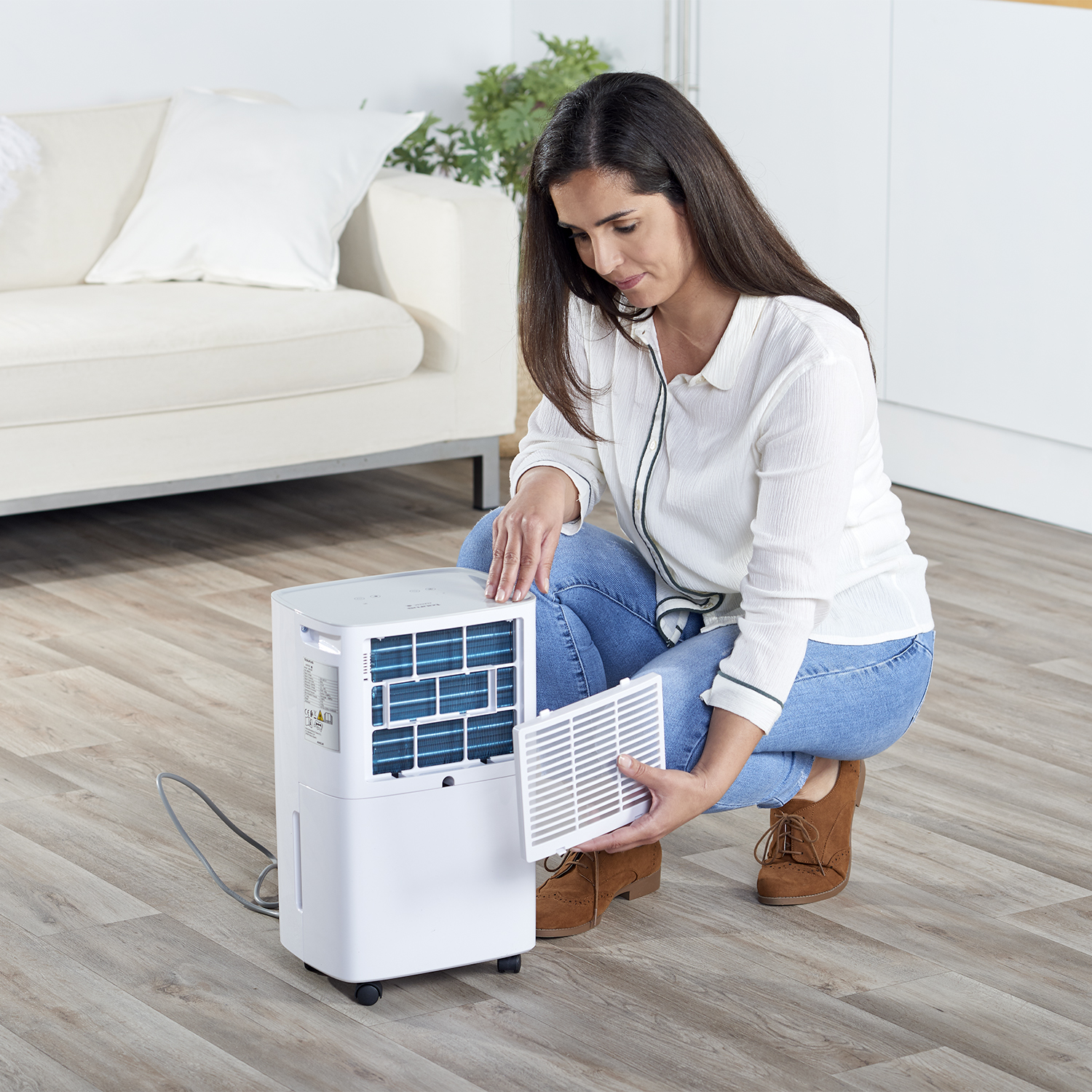 Ο αφυγραντήρας ενσωματώνει πλενόμενο φίλτρο για καθαρότερο αέρα, αυτόματο έλεγχο απόψυξης, χρονοδιακόπτη 24 ωρών, και δύο ρυθμιζόμενες ταχύτητες λειτουργίας. Με χαμηλό επίπεδο θορύβου (43dB) και λαβή μεταφοράς, μετακινείται εύκολα σε κάθε χώρο του σπιτιού.
