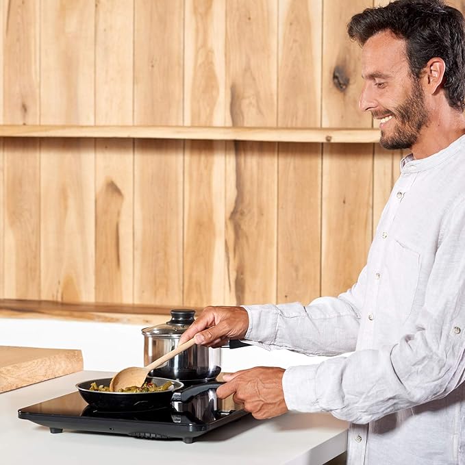 Portable induction Hob to cook wherever you want and many things at the same time. With the Darkfire Domino you have the cooker you need anywhere. With an elongated design to take up less space and Energy-Saving System technology that allows for low-consumption cooking.